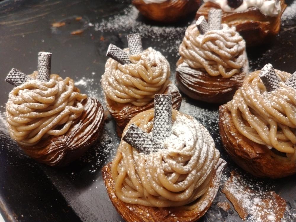カスタード、ホイップクリーム、渋皮入りマロンクリームのサクサクデニッシュです。