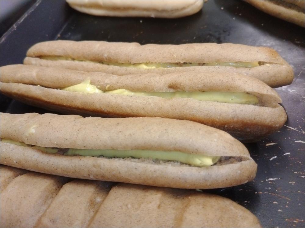 モチモチ玄米パンに、自家製ミルクバタークリーム入れました。