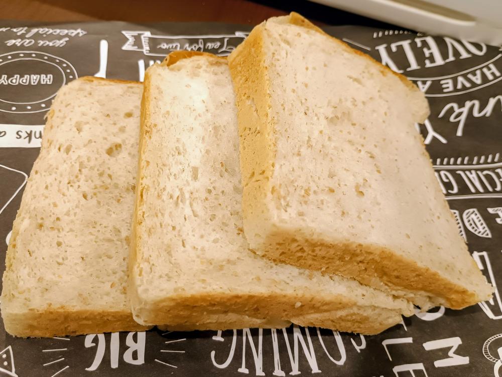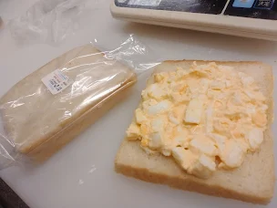 自家製たまごサラダを、当日焼き上げた生食パンに挟みました。