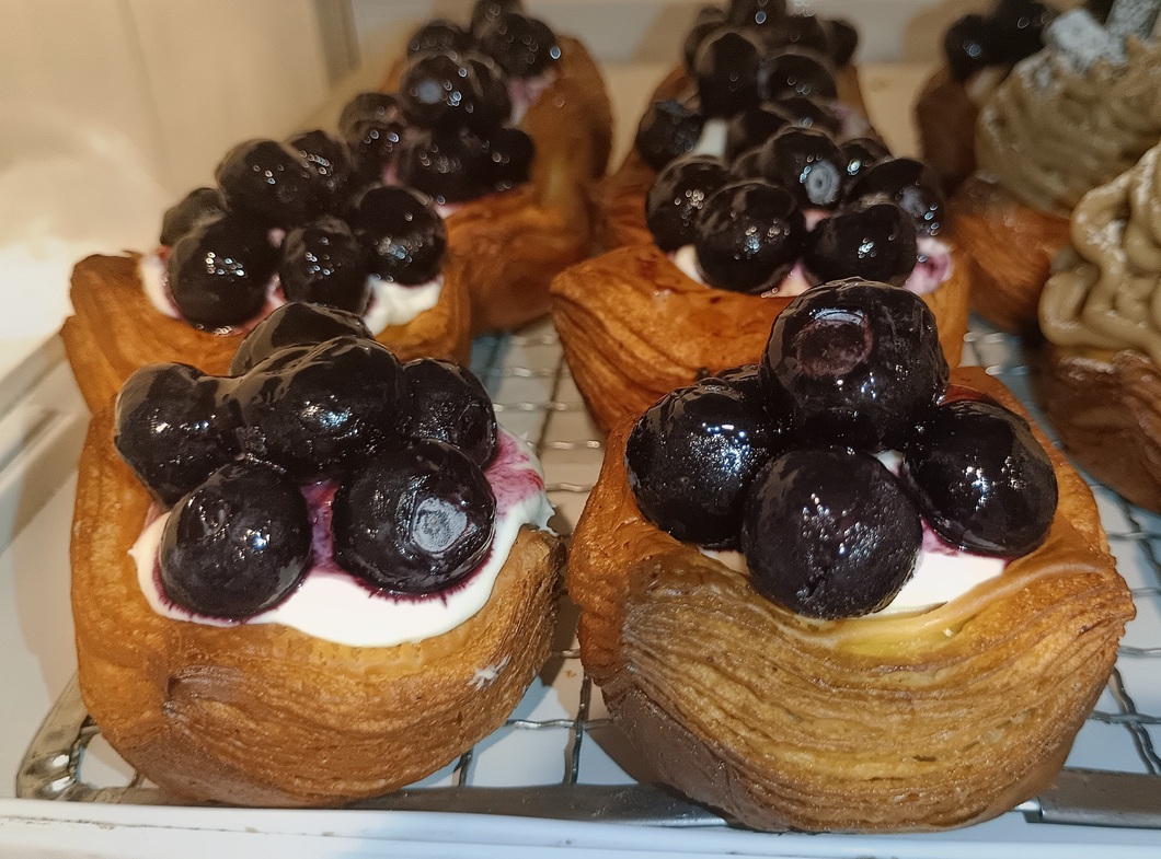 カスタード、レモン風味のレアチーズクリーム、ブルーベリーのサクサクデニッシュです。
