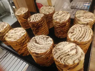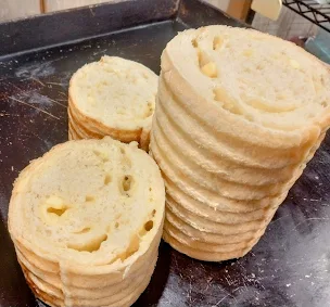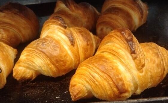 より、バターの香りを楽しめるように通常より、折り込み回数を減らし、バターの層を厚めにしてます。10:00& 13:00ころ焼き立てです。是非一度、お試しください。卵不使用です。
