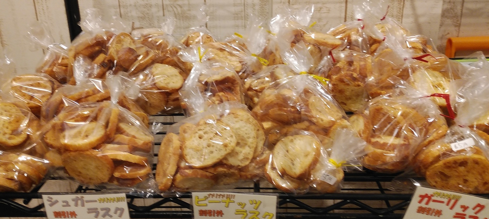 当店人気のフランスパンにイチジクレーズンです。日替わりでクルミレーズンも焼いてます。