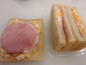 自家製たまごサラダと、ハムのサンドです。当日焼成の、生食パンです。